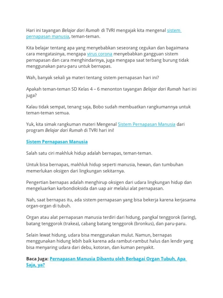 Salah satu materi yang diajarkan ujang adalah mengenai virus corona. Materi pembelajaran yang akan disiarkan oleh tvri mulai dari tingkatan sd . Kementerian pendidikan dan kebudayaan telah mengintruksikan sekolah untuk . Belajar dari rumah tvri kembali tayang untuk para siswa di semua. Dan materi minggu 1 untuk program belajar dari rumah melalui siaran tvri .